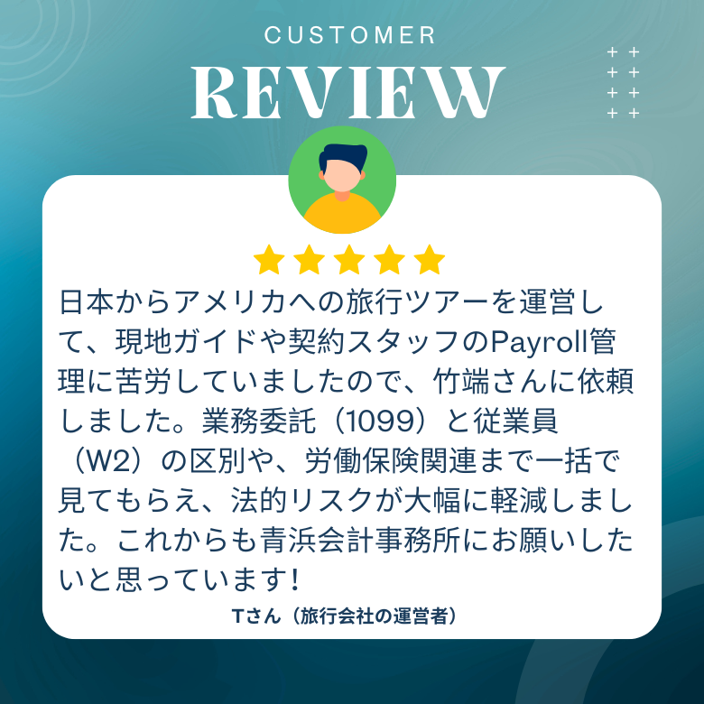 法人・個人の税務に関するサービスを提供いたします。日本語でやり取りしながらストレスフリーで手続きを代行いたします。